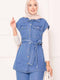 Gilet de costume en jean avec poches et ceinture amovible Bleu