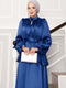Tailleur jupe en satin avec ceinture plissée à la taille, couleur indigo