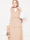 | Name | Costume deux pièces beige avec jupe plissée et ceinture |