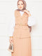 - Ürün mevsimliktir. Ürün yelek, etek ve kemer olmak üzere üç parçadan oluşmaktadır. Yelek kemer deyalıdır kemeri kendi kumaşından üretilmiştir ve aksesuar cep kapaklıdır. Etek yandan yarım fermuarlıdır.