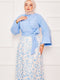 Chemise ceinturée et tailleur jupe à manches larges bleu bébé