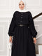 Ensemble jupe à manches ballon et détails côtelés noir