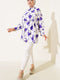 Chemise violette à motif de petites feuilles et cordon de serrage