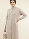 NameGilet long en maille avec boutons en métal doré et motif de pierres