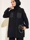 Costume en lin noir avec poches ornées de pierres
