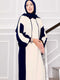 Robe de sport à capuche en tricot écru-bleu marine