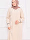 Robe hijab crème en maille avec poignets et jupe brodés de pierres