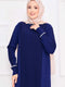 Robe en maille bleu marine avec hijab, poignets et jupe brodés de pierres