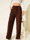 | Name | Pantalon rayé à volants et taille élastique, marron |