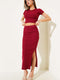 NameEnsemble jupe courte à bretelles fendues bordeaux