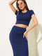 | Name | Ensemble jupe courte à bretelles fendues et détails bleu marine |