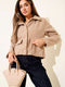 Veste courte en cachemire à col chemise et poches, couleur latte
