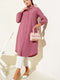 Chemise longue à col et poche unique, vieux rose