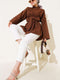 Tunique marron à ceinture intégrée et froncée sur le devant.