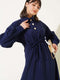 Robe à demi-boutons à texture froissée bleu marine