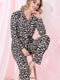 Ensemble pyjama en daim boutonné à imprimé léopard