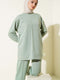 Costume deux pièces basique avec ceinture sur le devant, vert amande