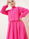 | Name | Robe fuchsia à demi-boutons et détail cape |