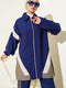 Costume deux pièces à rayures et fermeture éclair bleu marine beige