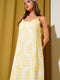 | Name | Robe midi jaune à bretelles et motif feuilles |