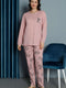 Ensemble pyjama en viscose à motif de feuilles, rose poudré