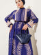 Robe ceinturée à motifs de feuilles bleu marine