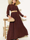 Robe boutonnée mi-plissée marron