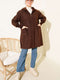 Cardigan bouclé con cappuccio a costine alla caviglia, marrone