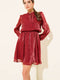 Mini abito in chiffon con allacciatura frontale, bordeaux