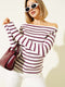 | Name | Blusa con scollo a barca a righe orizzontali, prugna |