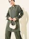 Completo due pezzi con cappuccio Loysa e dettaglio nastro, cachi
