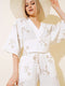 Completo due pezzi ricamato con maniche a pipistrello in ecrù