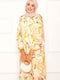 Abito in modal con motivo a foglie, abbottonato a metà, giallo