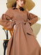 Abito Terikoton con maniche a palloncino e mezza cerniera color latte