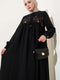NameZwarte jurk met bloemenborduursel op de voorkant