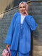 Indigo Kimono Tweedelige Set met Strikdetail aan de Voorkant