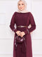 | Name | Hijab gebreide jurk met stenen geborduurde manchetten en rok, bordeauxrood |