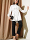 Taille Trekkoord Schouder Geplooid Shirt Ecru