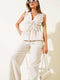 Tweedelig setje in beige met elastische tailleband en blouse.