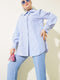 Gestreepte tuniek met verborgen knopen, tweedelige set, ijsblauw