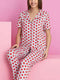 NameGestreepte pyjamaset met korte mouwen en knoopjes in hartjesmotief, grijs