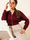 Kort vest met capuchon en ritssluiting, bordeauxrood