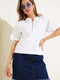 | Name | Wit T-shirt met schoudervullingen en ritssluiting. |