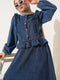 Ruffle Collar Rok Tweedelige Set Denim Blauw