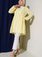 Gele kimono met gegolfde kraag en reliëfstrepen.