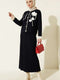 | Name | Ensemble jupe deux pièces bleu marine avec broderie de roses sur les poches |