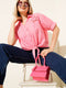 Chemise à nouer en dentelle florale rose