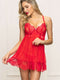 Lingerie fantaisie à fines bretelles et décolleté lacé, rouge
