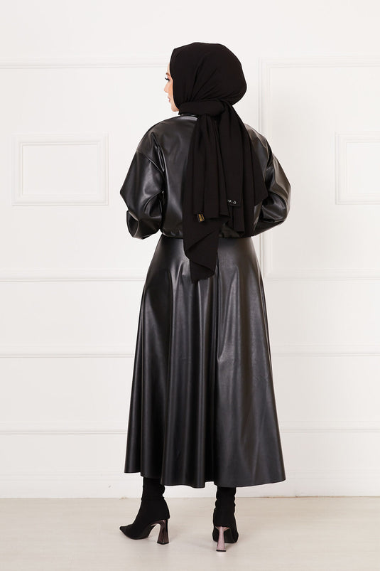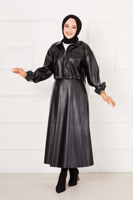 Tailleur jupe en cuir noir