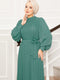 Robe de soirée hijab à manches en organza Cagla Green
